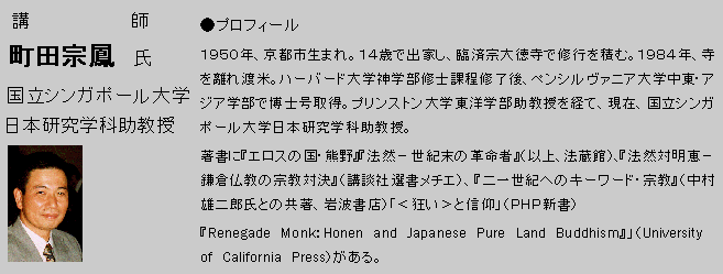 京都大徳寺出身のすごい新進気鋭学者が久々に故郷で講演!禅僧としての二十年の修行を捨て無一物で渡米、地を這いつつハーバード大学院を卒業、アメリカで大学教師となった覇気ある男。僧侶と学者の両方を体験した人ならではの「元気の出る話」、教育問題にも触れる予定。激動と不安な社会の中で大きなエネルギーを吸収して下さい。