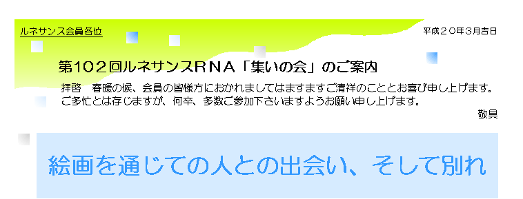 第102回ルネサンスRNA「集いの会」出欠連絡