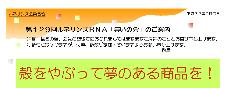 第129回ルネサンスRNA「集いの会」出欠連絡