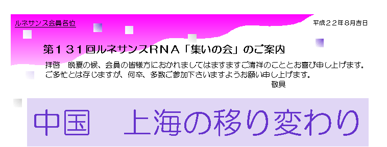 第131回ルネサンスRNA「集いの会」出欠連絡