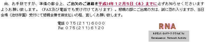 ルネサンスRNA事務局行 FAX (075)213-3835