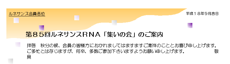第85回ルネサンスRNA「集いの会」出欠連絡