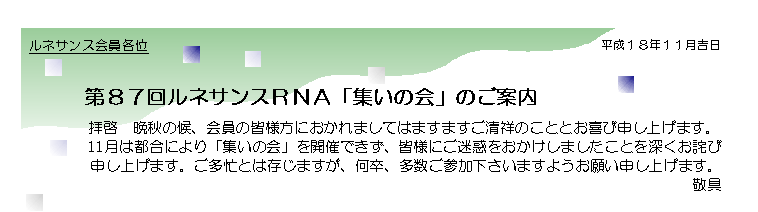 第87回ルネサンスRNA「集いの会」出欠連絡